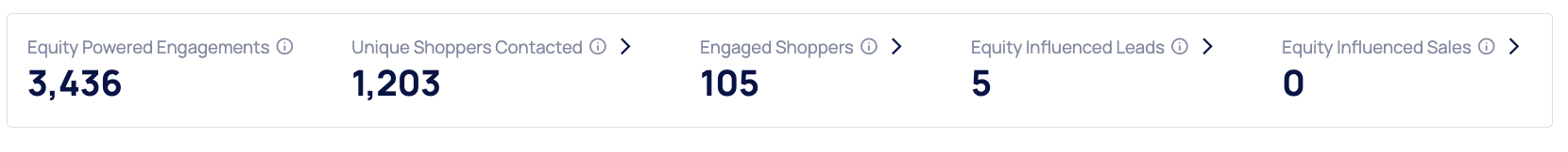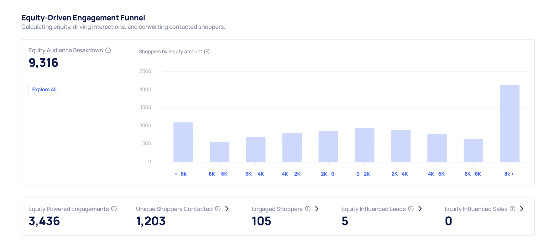 Each of these links directly to the relevant Shopper page for a full view of the Shopper journey, engagement score, and Equity related information.