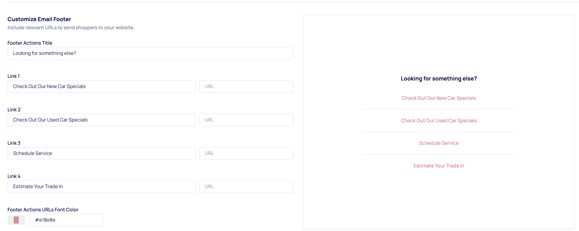 The footer of the email is valuable real estate which houses several options and prompts Shoppers to click or take some action. These sections can be adjusted to meet the needs of your dealership.