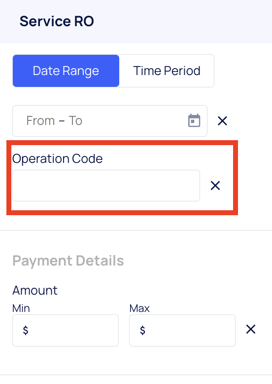Service ROs, Appointments, Operation Code* this data is pulled from the CRM / DMS and is updated daily. If the CRM / DMS has less than 100 records for Service ROs in the last 365 days - the filter will not appear as there is not enough data to use the filter in a meaningful way.