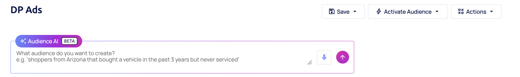 This functionality is available only once an audience is saved; Internal, Manual, and External Activation are supported from within the Audience Builder page.