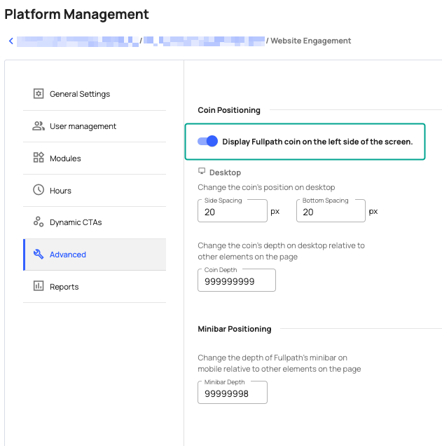 If you prefer to have the widget appear on the left side of the screen, this can be adjusted on the Advanced Website Engagement Settings page: