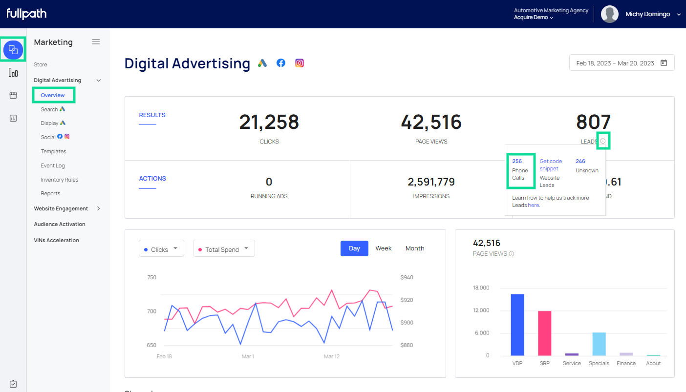 Fullpath tracks leads from calls that can be attributed to paid ads in two ways: