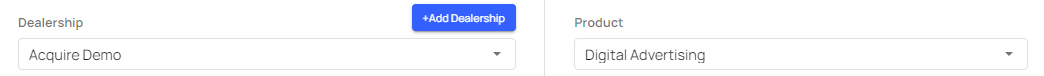 - In the following screen, make sure you have the correct dealership selected in the "Dealership" dropdown, and "Digital Advertising" selected in the "Product" dropdown: