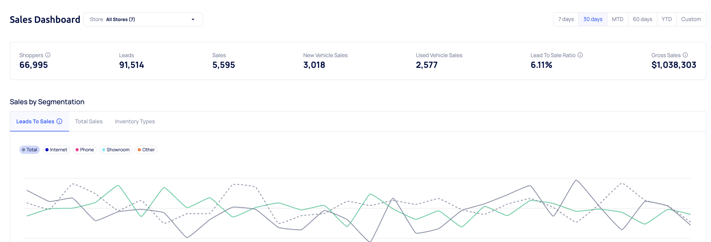 - Leads to Sale by source (Internet, Phone, Showroom, or other)