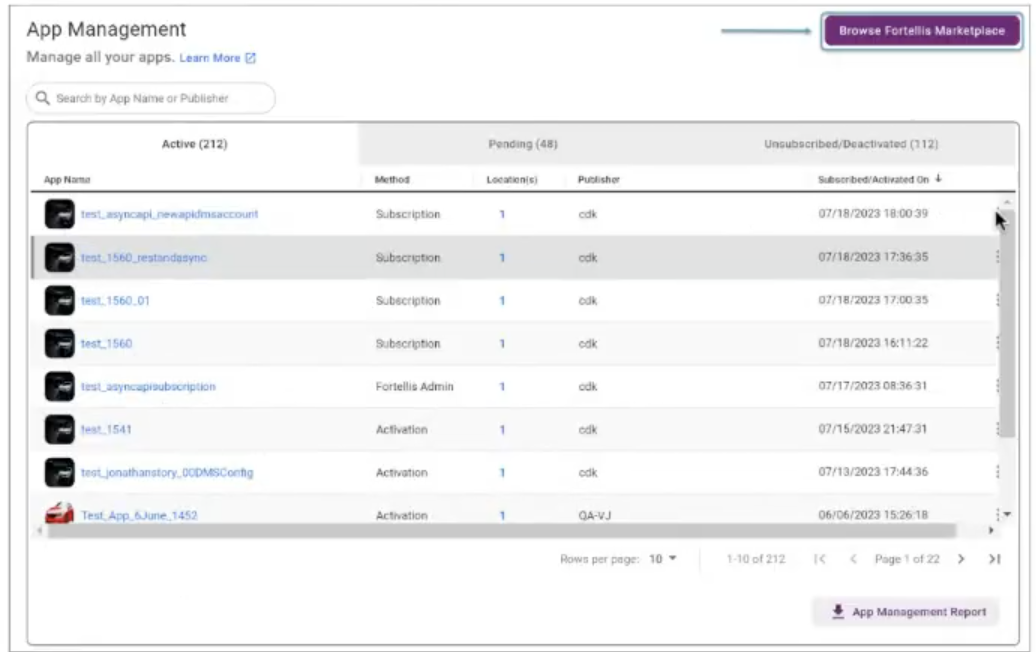 For detailed instructions on managing apps within the Fortellis Marketplace, please refer to the Fortellis documentation https://docs.fortellis.io/docs/dealer-portal/apps-for-dealers/managing-app-configurations/