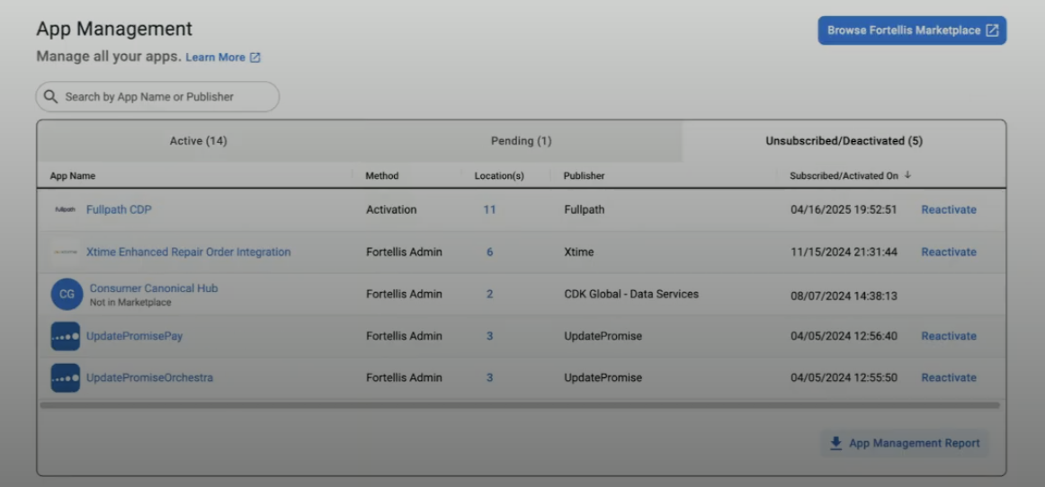 Automatic Data Reception: After reactivating the app within Fortellis and it has been approved by Fullpath, your account will seamlessly begin receiving updated data within 1-2 days.