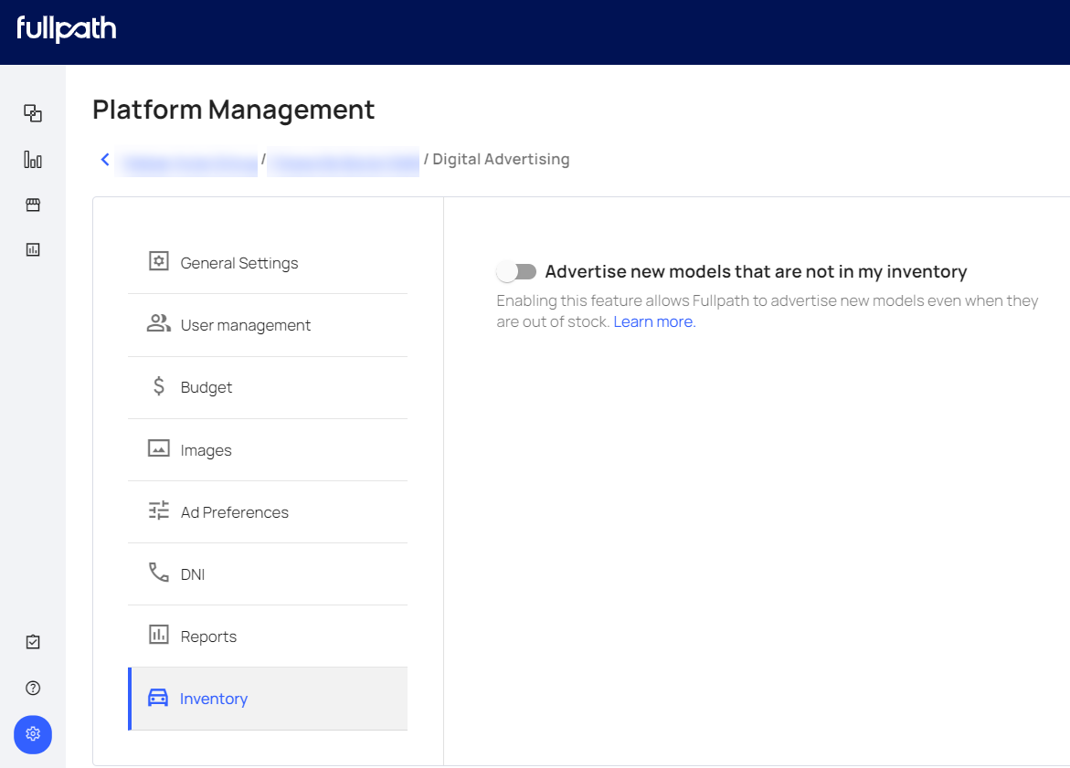 Out-of-stock: Inventory ads are tied to a dealership's available inventory (via VDPs - or in some cases, a feed). However, some dealerships would still like to capture and engage with the audience searching for/in the market for vehicles that are not currently on the lot or not yet tied to a VDP. The out-of-stock inventory feature allows Fullpath to direct ad clicks to preset pages on your website so your Dealership can still engage shoppers with targeted advertising and capture leads.