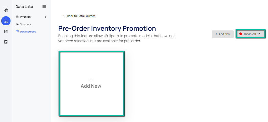 Pre-Order Inventory: This feature is off by default and may be activated on the Pre-Order Inventory Data Sources page in one of two ways: